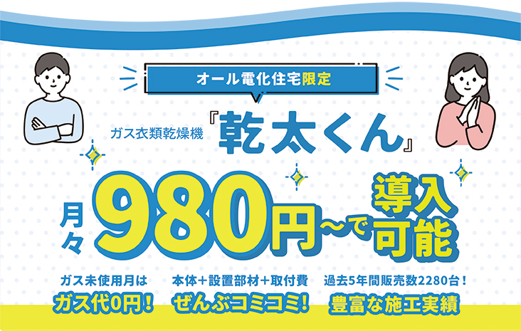 オール電化住宅で乾太くんの設置実績が多数!!
