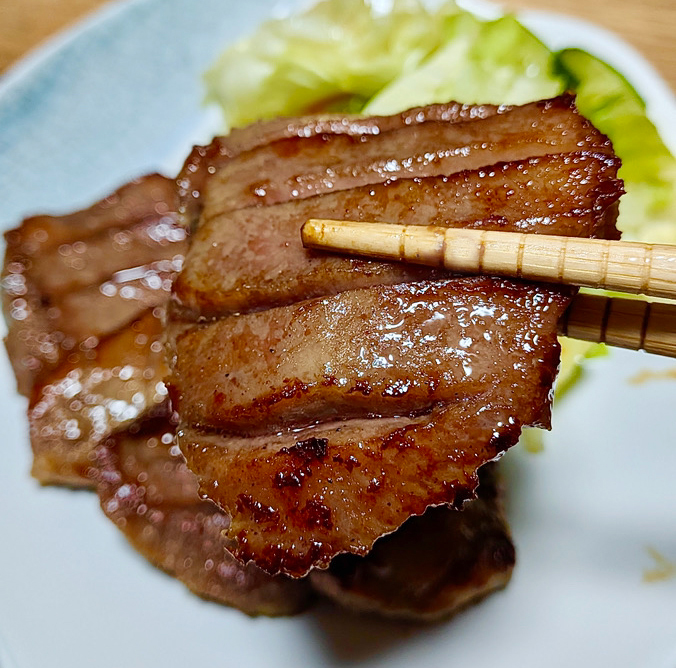 両面切込みが入っており、こだわりの塩だれに漬込んであるので、ただただフライパンで焼くだけ。ご飯に、お酒のお供にぴったりです。