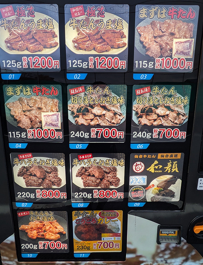 仙台の名店「牛たん伝説 和顔(わげん)」の厚切り味付き牛たんやホルモン、カレーが24時間好きな時に購入できます。