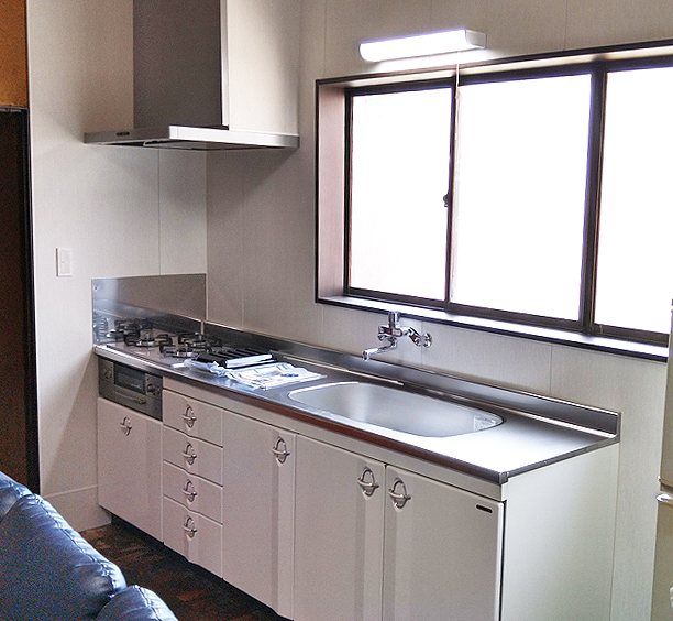普段からお困り事をお聞きしているお客様で、今回は「換気扇の調子がわるい」とのご相談を受けました。昔ながらの換気扇のため、油煙が外に出て、外壁に固着してしまっているのと、古いキッチンで使い勝手が悪くなってきていることから、キッチンリフォームをさせていただきました。この「エマーユフラット」は安心価格と早い工期で人気のシステムキッチンですが、扉の表裏、キャビネットの底・底裏まで「ホーロー」なので、長持ちします!毎日のお手入れも楽なので安心してお使いいただけます。【横山】