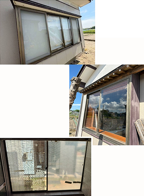 経年劣化により、外窓が2ヶ所開けられない状況でした。スムーズに開閉が出来るようになり喜んでいただけました。合わせて、浴室の窓も透明ガラスで外に見えやすかったため、曇りガラスの内窓に。プライベートも守られ、断熱性もアップし、大変喜んでいただけました。